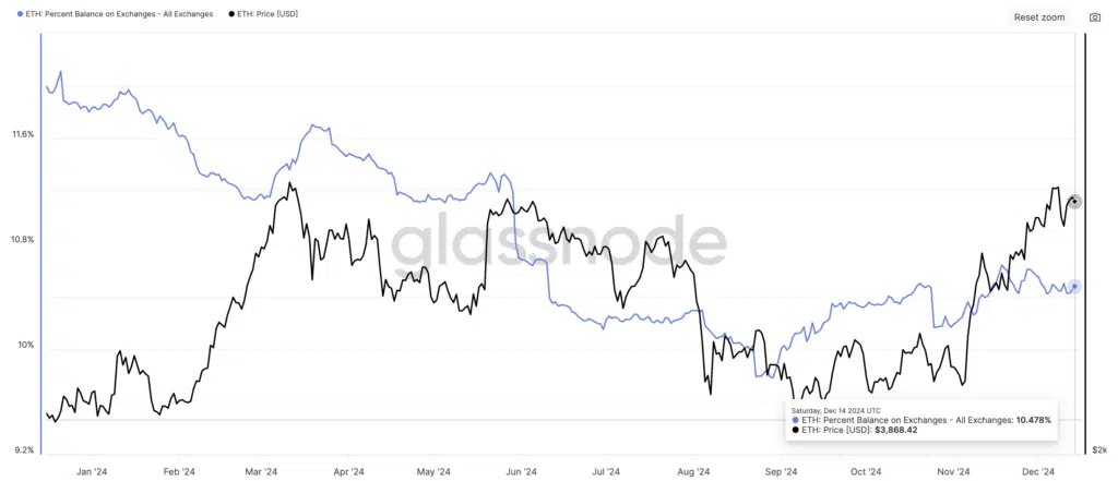 Percentuale ETH sugli exchange: un segnale di attenzione