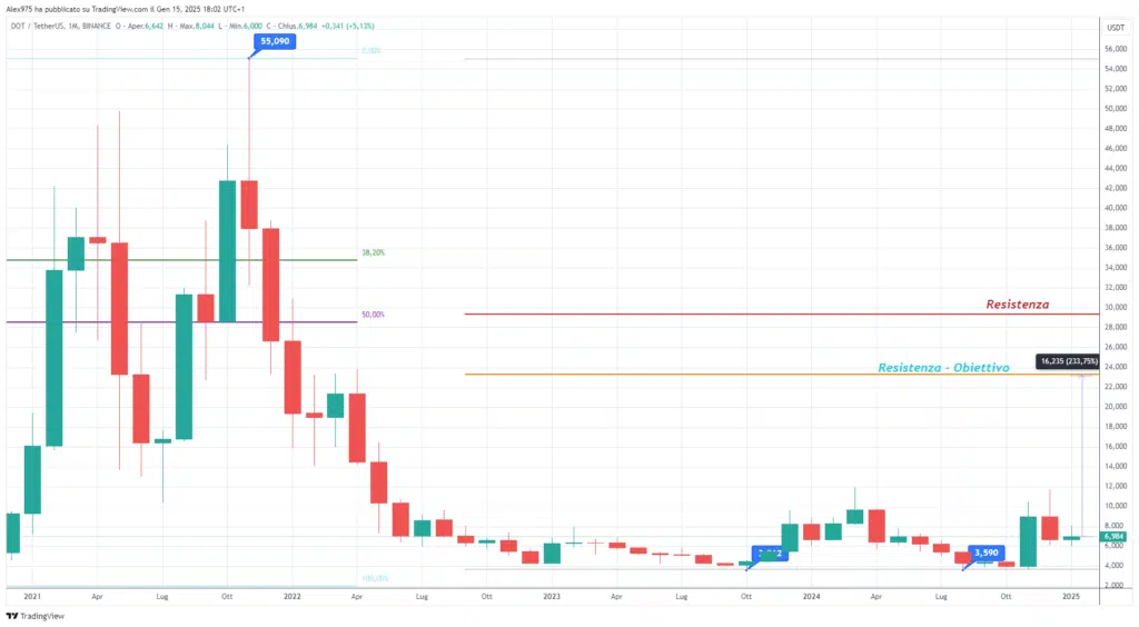 Questi due livelli restano tuttora validi e sono tra i più rilevanti per una possibile ripartenza con forza di Polkadot.
