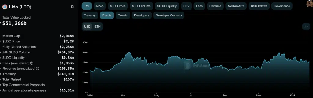 Nonostante queste difficoltà, Lido continua a essere il leader nello staking di Ethereum, controllando oltre il 28,5% di tutti gli Ether in staking. Questo core business rimane redditizio, posizionando Lido favorevolmente in un mercato in cui la domanda di staking di Ethereum resta in crescita.