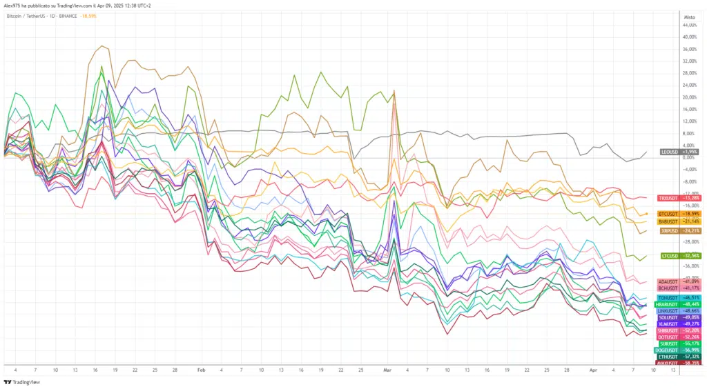 Lo scenario cambia se si osserva la performance di aprile, con una contrazione contenuta del 6%, mentre il quadro annuale resta profondamente negativo, con un calo del -42,80% da inizio 2025.