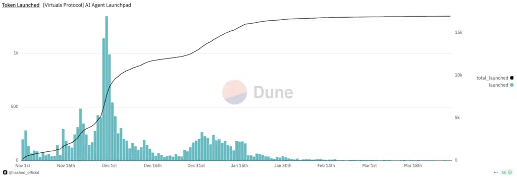 Token lanciati su Virtual ProtocolFonte dati: https://dune.com/hashed_official/fun-virtuals-io