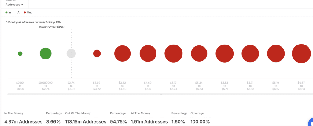 Tuttavia, la fase ribassista di lungo periodo che sta interessando il prezzo di TON – che aveva toccato un ATH a 8,282 USDT nel giugno 2024 – continua a pesare sul sentiment degli investitori.