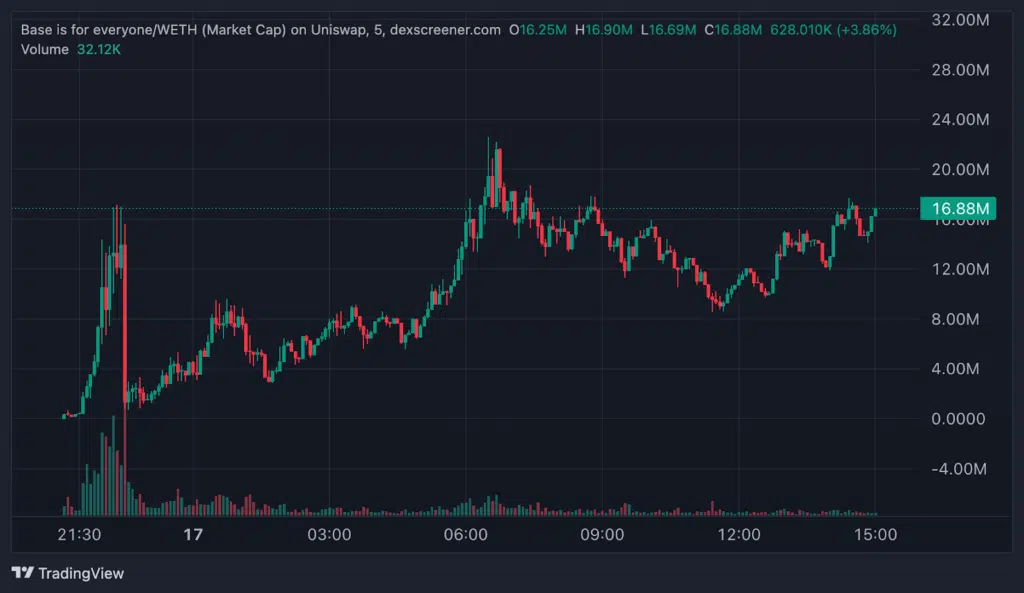 Immediatamente è stato lanciato il token ispirato al tweet postato da Base, raggiungendo in breve tempo una capitalizzazione di circa $16 milioni. Chiaramente la risorsa non ha un vero e proprio valore economico, se non quello che deriva dalla cultura del meme e del collezionismo digitale. Ad ogni modo, gli utenti hanno iniziato a comprare in massa il token, vista la partecipazione di un colosso come Base, gestito a sua volta dall’immenso exchange Coinbase.
