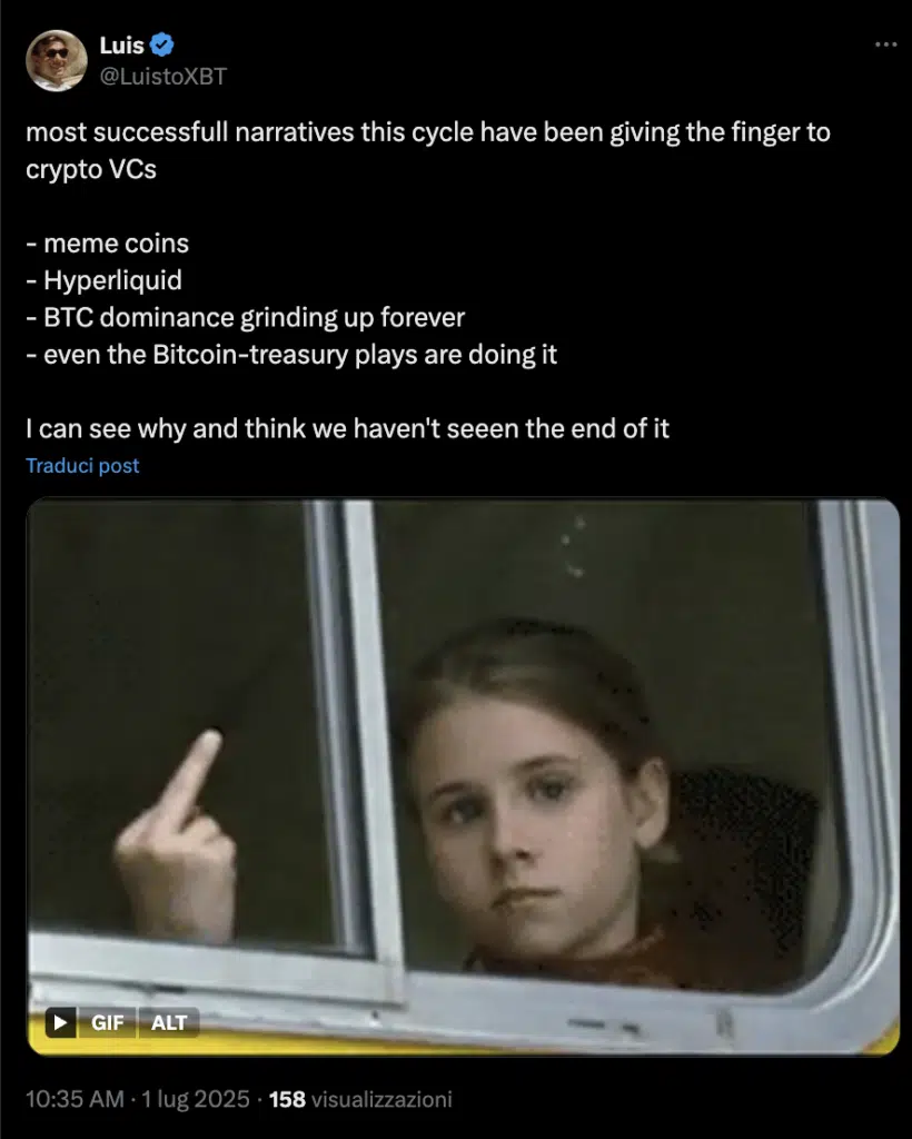 Purtroppo il settore è infestato dal rumore: chiunque vuole gridare la sua, tra chi shilla il token miracoloso che dovrebbe fare 100X ( ma che poi va a -90%) e chi propone l’ultima novità tecnologica “Ethereum-killer”. Nella maggior parte dei casi, quello che leggiamo su X e sui vari social ( a maggior ragione se su Instagram e TikTok), è solo fuffa. Non sempre vi è malizia in un informazione, ma c’è sicuramente una scarsa qualità complessiva che rende il dato ininfluente, e talvolta pericoloso per chi lo legge.