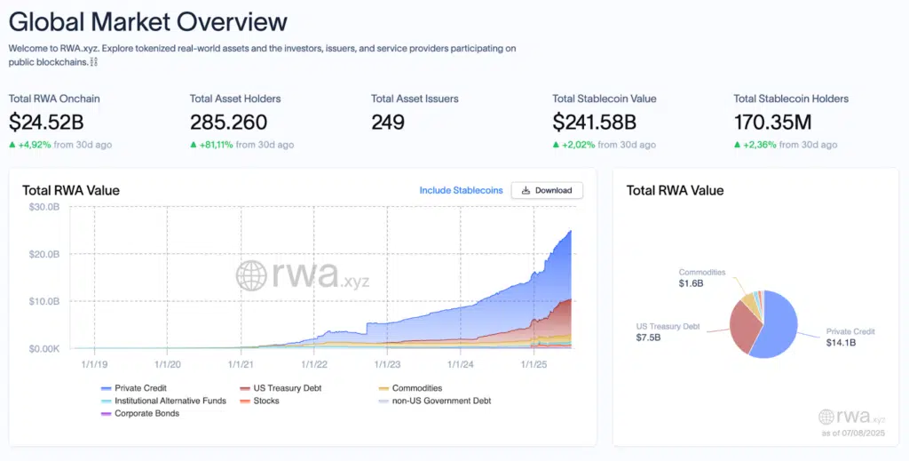 In tutto ciò gli asset RWA accelerano senza voltarsi: negli ultimi 30 giorni abbiamo visto un aumento del capitale bloccato per circa il 4,92%, tanto da portare la somma a $24,5 miliardi. Gli holders di queste monete sono esplosi con un +81,1%, complice l’ingresso affiatato del pubblico retail. In particolare il valore investito nelle stocks tokenizzate è salito del 19% circa, con gli address attivi che sono schizzati alle stelle con un incremento del 8.800%.