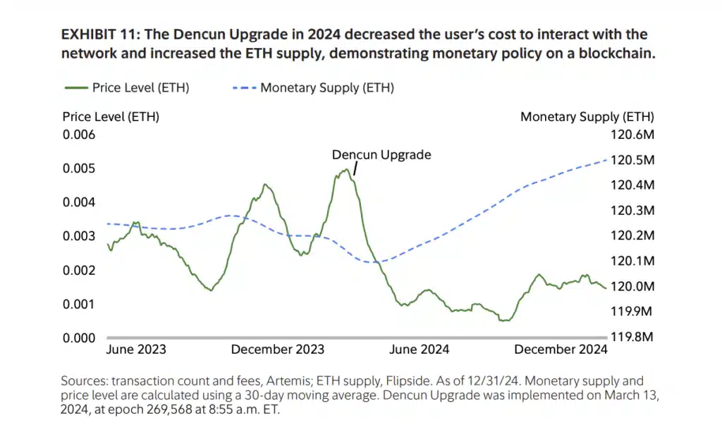 Si tratta di un modello che permette alla rete di autogestirsi, essendo in grado di ridistribuire risorse in modo sostenibile e creare un equilibrio continuo tra sicurezza e valore economico. Non che non manchino anche qui le criticità, ma è comunque una forma di governance monetaria unica nel suo genere, gestita dal codice. E con le modifiche al codice, come il recente upgrade Dencun si possono introdurre (previa approvazione all’unanimità) cambiamenti che influenzano le dinamiche monetarie. Dencun infatti ha abbassato il costo delle transazioni sui L2, causando un aumento della massa monetaria.