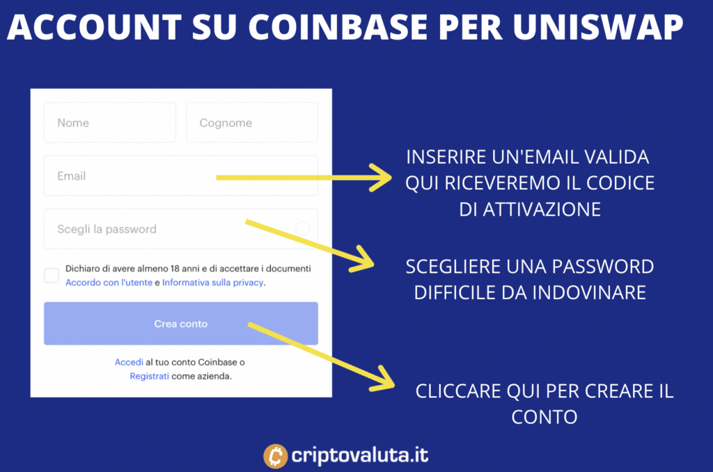Inoltre, per chi volesse qualcosa di più complesso c’è anche a disposizione la sua piattaforma PRO che permette lo scambio istantaneo tra diversi token e criptovalute e anche verso gli stable coin. Aprire un conto con Coinbase è molto facile e potremo essere operativi su Uniswap nel giro di pochi minuti.
