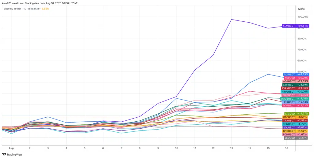 In allegato è riportato il grafico con l’andamento da inizio luglio dei principali token della top 20.