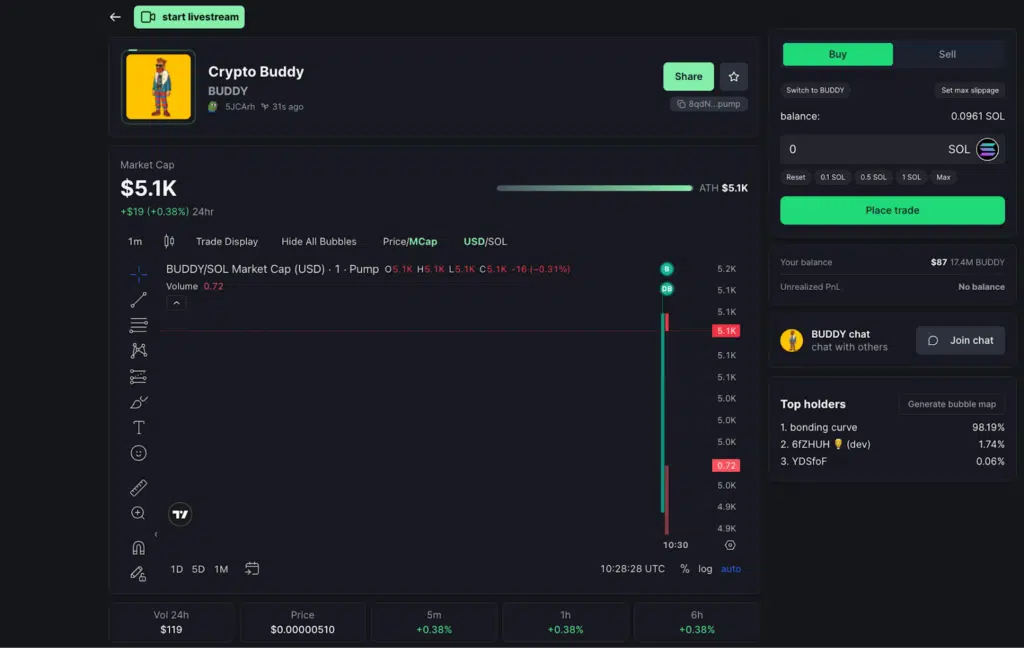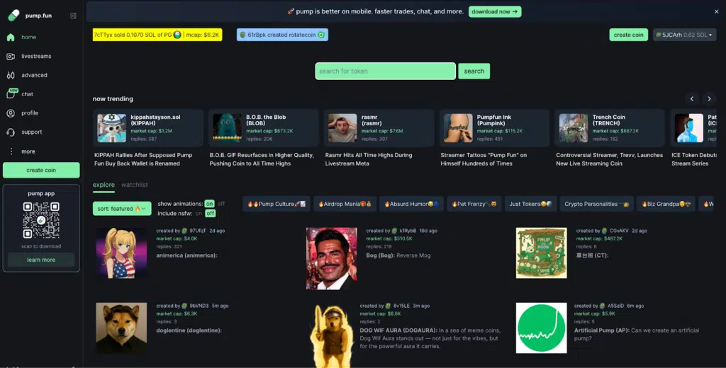 Con PumpFun, invece, questo processo è stato reso molto più immediato e alla portata di tutti: chiunque può lanciare la propria criptovaluta in pochi secondi, direttamente dall’interfaccia intuitiva del sito, senza dover scrivere una riga di codice. Allo stesso tempo anche i traders di memecoin possono negoziare in un hub automatizzato, pieno di nuove monete che vengono inaugurate ogni giorno.
