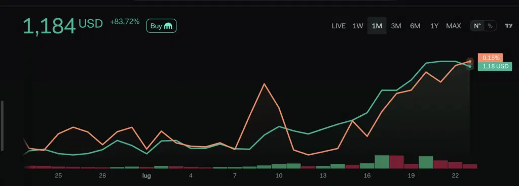 A livello tecnico, il daily mostra segnali rialzisti ben strutturati, mentre il weekly è misto e il monthly appare ancora debole. Il momentum sul breve è forte ma in zona di ipercomprato. Le resistenze di breve e medio termine si trovano a 1,31 e 1,55 USDT. La principale di lungo a 2,30 USDT.