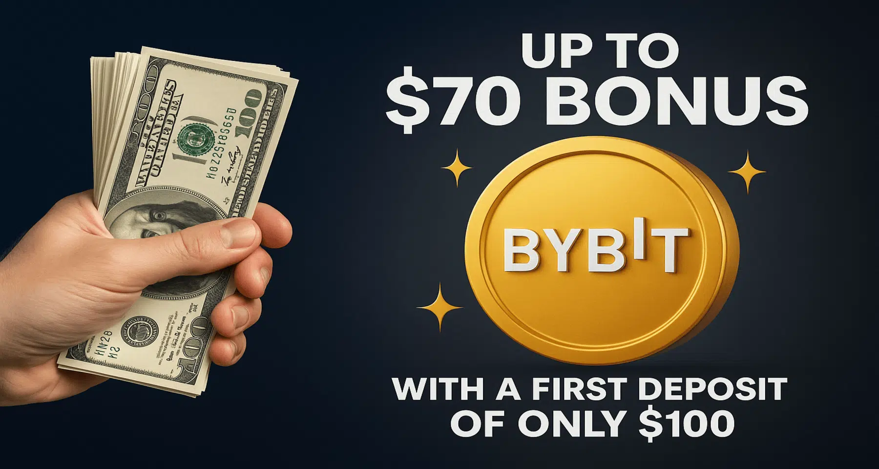 Fino a 70 dollari per iniziare a investire: basta infatti attivare da qui il conto su Bybit.eu e fare un versamento di soli 100$ iniziali (o CONTROVALORE in crypto).
