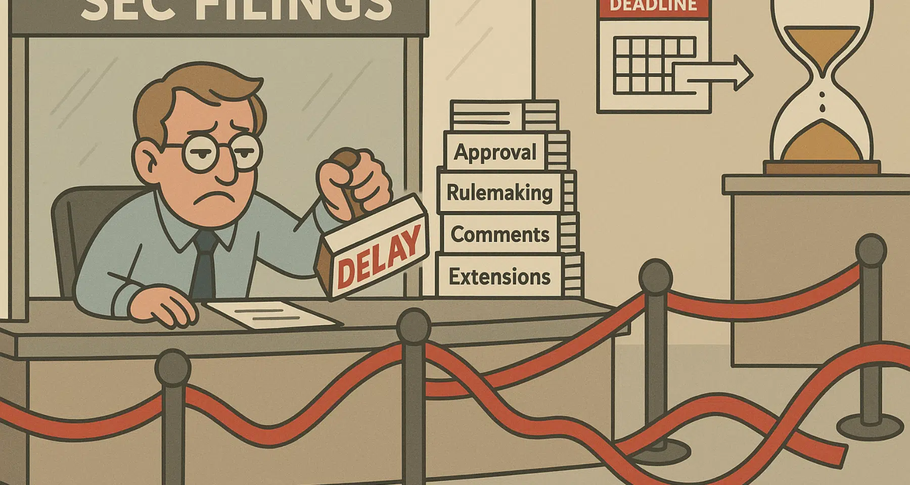 SEC se la sta comunque prendendo piuttosto comoda: l’arrivo di Paul Atkins non è riuscito ancora a imprimere un’accelerazione a un processo di approvazione ancora macchinoso e che è in via di revisione proprio per essere snellito in futuro.