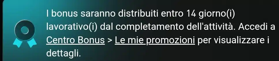 - ⏰ 14 giorni lavorativi dal completamento di tutte le attività per poter ricevere tutti i bonus