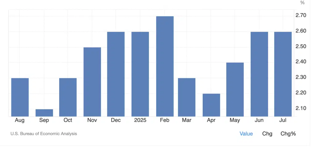 I dati PCE, il più importante degli indici per misurare l’inflazione secondo Federal Reserve, non riservano grosse sorprese. Come da previsioni – che avevamo fornito qui – la classica complessiva è a +2,6%, mentre la Core (che esclude energetici e alimentari) sale a +2,9%. Non è certamente un bel vedere: l’inflazione di fatto rimbalza in modo consistente. E anzi, a farlo è – dei due indici – quello più rilevante.