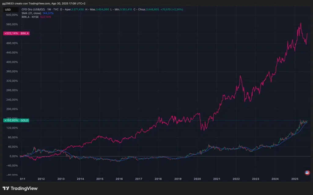 È anche vero che da quella lettera del 2011 la sua Berkshire Hathaway è cresciuta del 520%, mentre l’oro ha dovuto accontentarsi di un +150%.