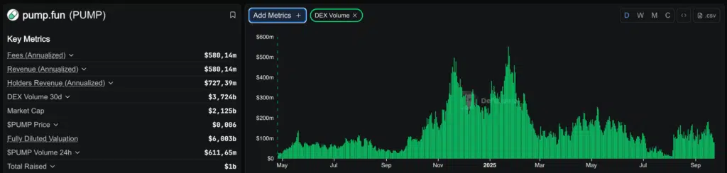 Pump.fun DEX Volume – Fonte: DefiLlama