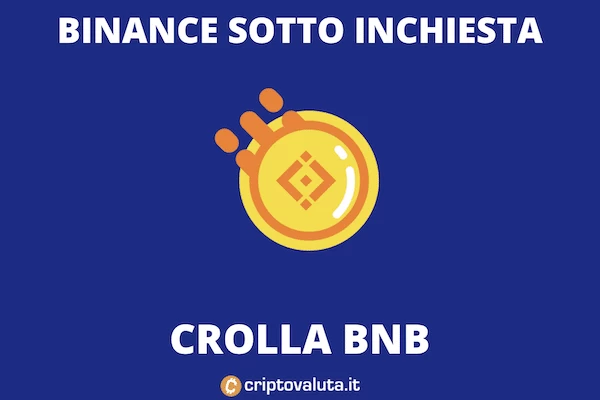 Ci sono state comunque delle ripercussioni su BNB, il token che rappresenta l’exchange e che viene utilizzato all’interno del network per il pagamento delle commissioni. Chi volesse approfittare e fare trading news, potrà trovarlo anche su eToro (qui per un conto dimostrativo gratis), broker che offre anche la vendita allo scoperto, ovvero la possibilità di puntare sul ribasso di un determinato asset cripto.
