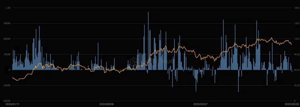 Nella giornata del 26 settembre, venerdì, abbiamo avuto un evento quasi unico, e comunque molto raro. Sono i deflussi dall’ETF Bitcoin di iShares (BlackRock), evento che non si verificava dal 5 settembre scorso e che si è verificato in generale circa 30 volte da quando esiste questo prodotto. Prodotto che è scambiato dal 10 gennaio 2024 – cosa che dovrebbe offrire un segnale chiaro della rarità dell’evento.