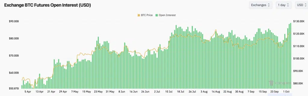 Il mercato dei derivati su Bitcoin continua a fornire indicazioni rilevanti sullo stato dell’uptrend in atto. Dai dati di CoinGlass emerge come l’Open Interest aggregato (OI) sui futures abbia raggiunto quota 88,7 miliardi di dollari, uno dei livelli più alti del 2025, in parallelo al nuovo massimo di prezzo oltre i 120.000 USDT. Le principali piazze restano CME con 17,4 miliardi, Binance con 15,6 miliardi e Bybit con circa 10 miliardi.