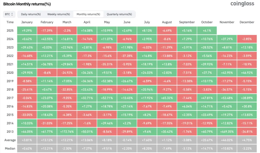 Ricordiamo che con Uptober ha inizio il quarto trimestre (Q4) che a sua volta è storicamente il più performante dell’anno, con una media del 79% e una mediana del 49%. Per un approfondimento sulla stagionalità di BTC vi rimandiamo all’articolo a questo link.