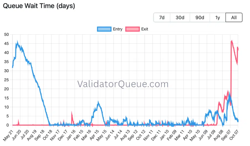 Non si possono prelevare istantaneamente gli ETF messi in staking. Anzi, le code sono storicamente relativamente lunghe e negli ultimi periodi hanno in alcune occasioni viaggiato intorno ai 50 giorni. Una durata per il prelievo troppo lunga per un ETF che potrebbe averne bisogno subito.