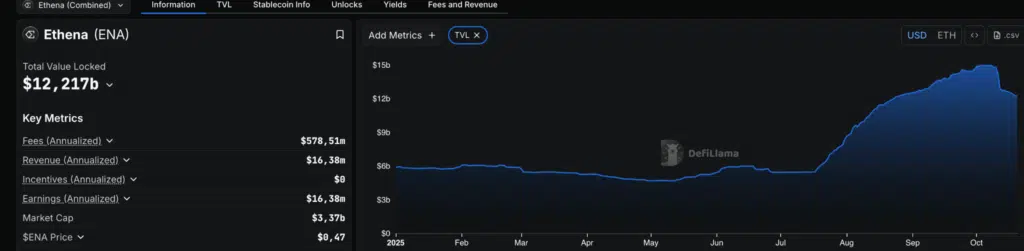 La stablecoin sintetica USDe ha superato i 6 miliardi di dollari di offerta, mentre il valore totale bloccato (TVL) ha toccato 12,2 miliardi, ma in calo rispetto ai 13,6 miliardi di settembre, con oltre 123 milioni di dollari in commissioni trimestrali. Le partnership con Avalanche e Conduit, insieme al buyback da 310 milioni di StablecoinX, rafforzano l’espansione e la fiducia.