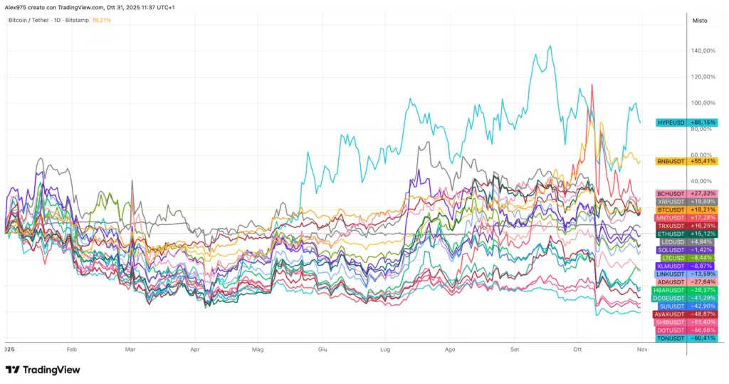 Nelle ultime settimane, Binance Coin ha però perso lo scettro di miglior token della Top 20 da inizio anno, riconquistato da Hyperliquid che registra una crescita di circa +85%.
