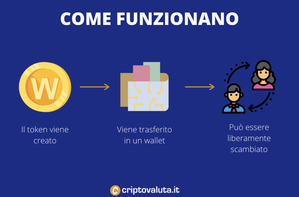Sono token unici e non fungibili, che rappresentano il diritto di proprietà su un determinato bene digitale. Possono essere creati, venduti e comprati.