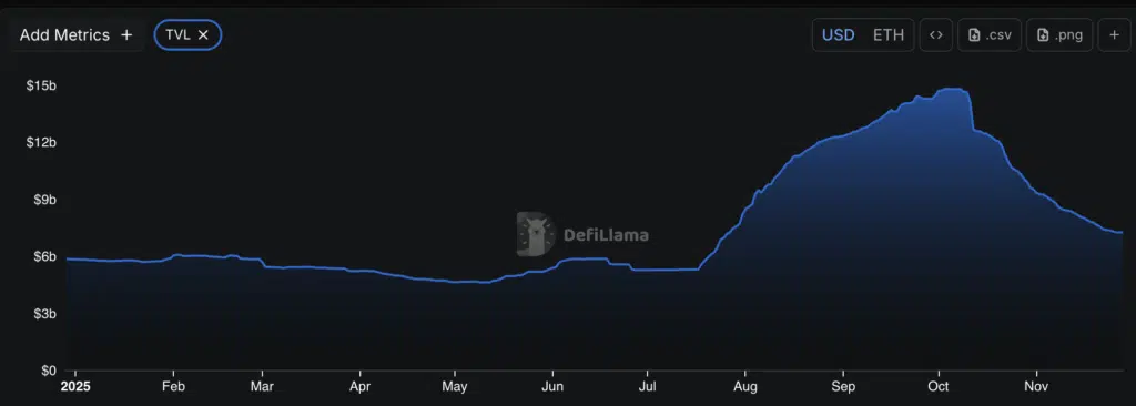 Ethena è l’emittente della stablecoin USDe che sta registrando una forte contrazione della sua TVL (total value locked), che si è dimezzata in breve tempo. Il calo è legato soprattutto al venir meno dei rendimenti che avevano attirato grandi capitali nelle strategie basate sulla stablecoin. Con la fine delle condizioni favorevoli, molti utenti hanno ritirato liquidità, lasciando USDe in una fase di forte ridimensionamento operativa.