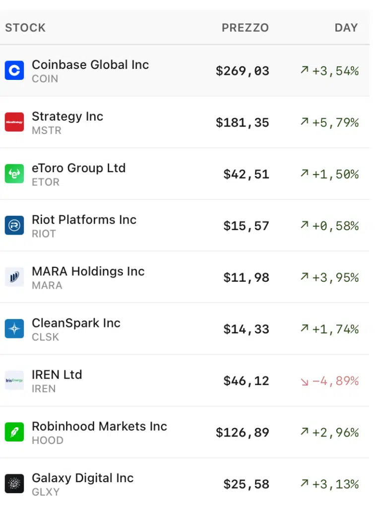 A brillare però di più dall’apertura sono gli asset più strettamente legati al mondo crypto, anche sull’azionario. Strategy recupera un +6,11% dopo le vicissitudini degli ultimi giorni, che sono stati condizionati anche dalla creazione di un cuscinetto per far fronte anche al pagamento di dividendi. Bene anche $MARA, $COIN, e più in generale tutto il gruppo dei miner, con la sola eccezione di $IREN.