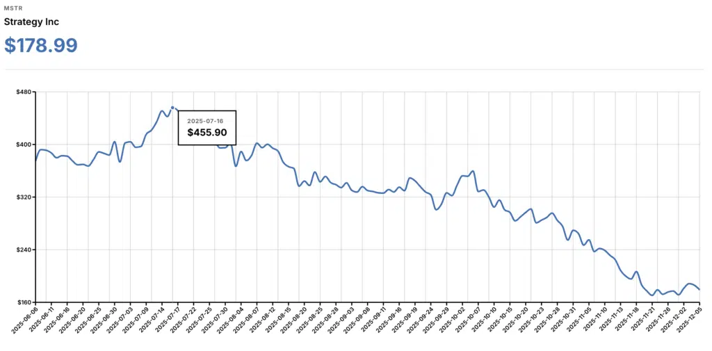 Questa analisi è in funzione sia del prezzo di Bitcoin in discesa, sia della riduzione dei multipli [del valore delle azioni MSTR rispetto alle detenzioni in Bitcoin, NDR].