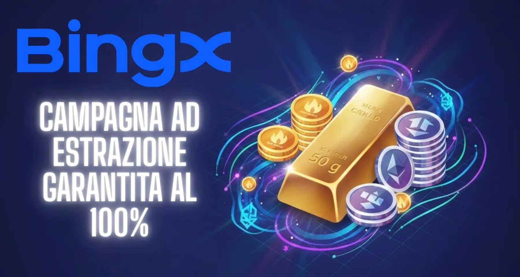 Scopriamo cos'è e come accedere alla SBALORDITIVA campagna BingX ad estrazione fortunata: 50g in oro e tante criptovalute in REGALO, con percentuale di vincita pari al 100% con ogni ticket di partecipazione!