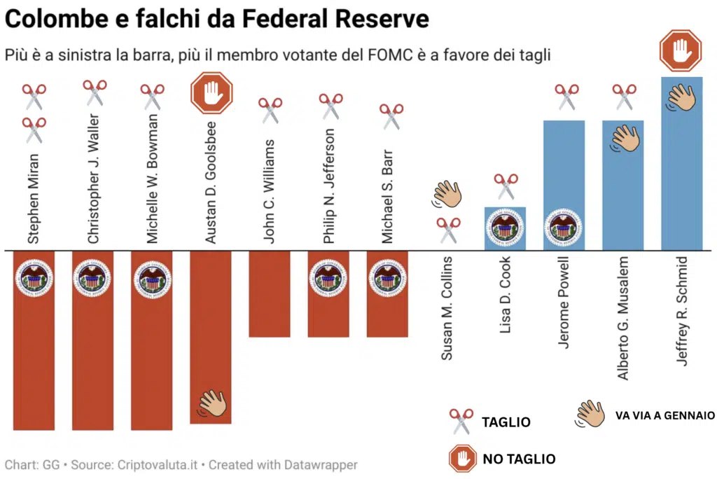 I due che hanno votato contro, Schmid e Goolsbee dal 2026 non voteranno più perché ci sarà la rotazione dei membri del FOMC che arrivano dalle divisioni regionali di Fed. E quindi lasciare con una presa di posizione messa a verbale non costava assolutamente nulla.