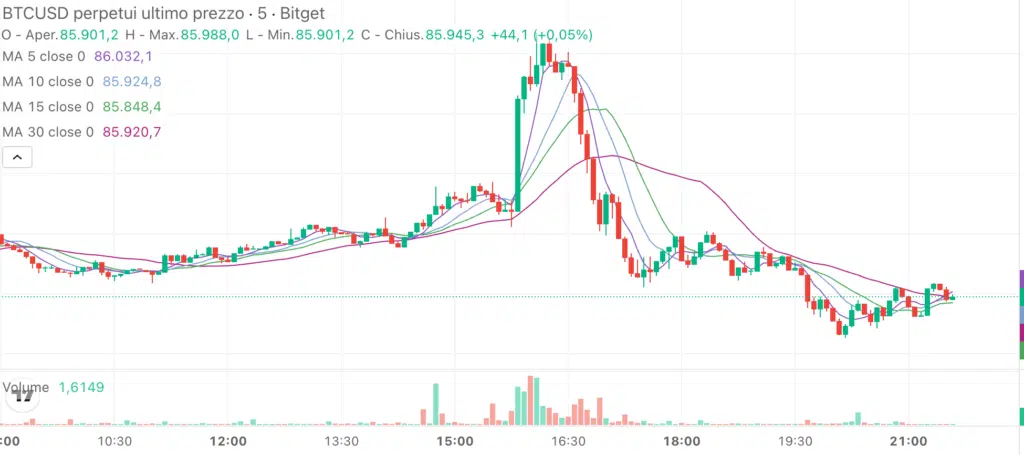 Un movimento molto rapido verso l’alto e leggermente più lento verso il basso, che ha lasciato in tanti a bocca aperta, che ha portato a casa qualche liquidazione e tante improperi da parte di chi credeva che potessimo lasciarsi alle spalle anche i 90.000$.