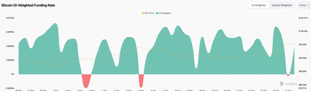 Nelle ultime sedute il funding resta positivo ma contenuto, indicando partecipazione rialzista ordinata e contenuta. Questa situazione mostra un mercato costruttivo senza eccessi di leva.