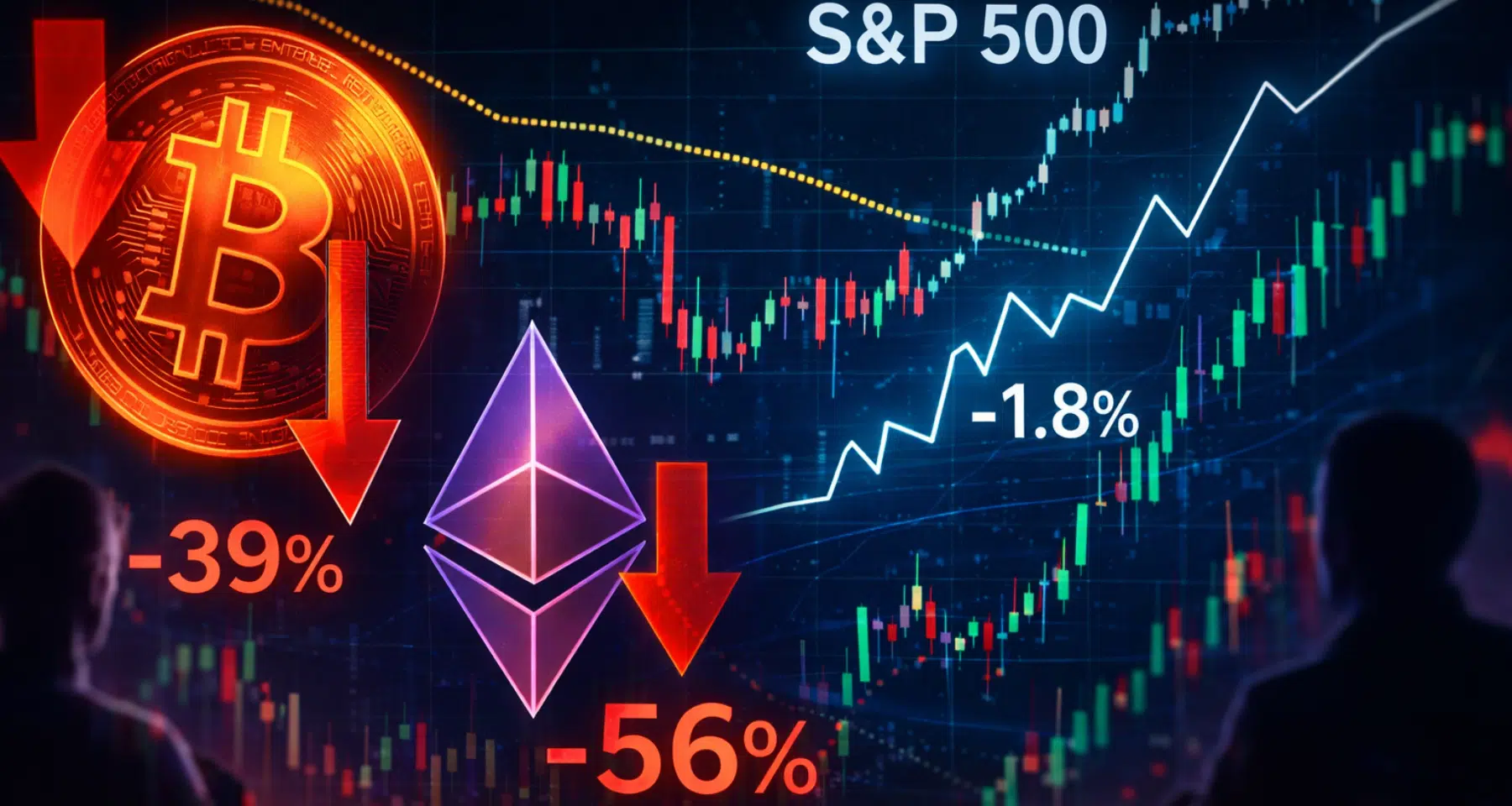 Bitcoin a -39% dall’ATH con S&P 500 a -1,80%