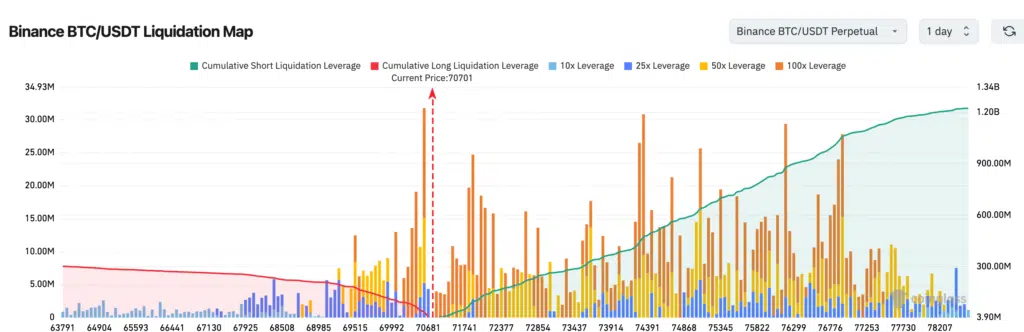 La mappa delle liquidazioni offerta da Coinglass