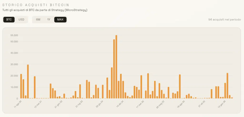 - Acquisti totali: dopo un periodo di acquisti piuttosto contenuti, Saylor riuscirà a piazzare degli acquisti quantitativamente importanti, magari sfruttando il momento poco brillante di prezzo per $BTC?