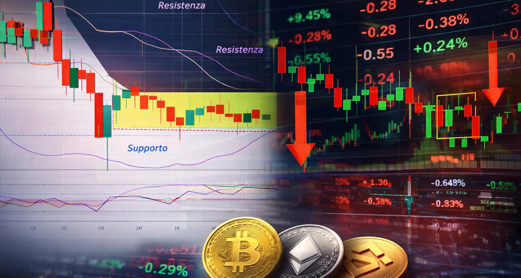 Mercati deboli, crypto in rosso e indici USA negativi. Oggi focus sui dati marco di PIL e PCE. Ancora box range di BTC ed ETH. Occhio agli indicatori.
