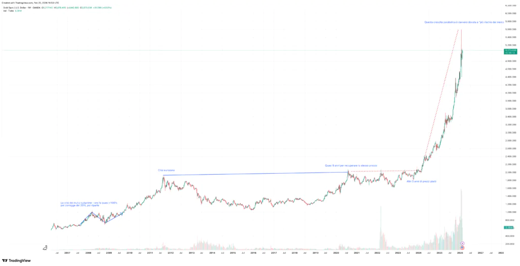 Vero, anzi verissimo. Mentre l’oro sparava massimi su massimi a causa del caos totale (quale, esattamente? Cos’è cambiato così tanto nel 2024 e 2025 tale da spingere TUTTI a comprare oro? Mistero della fede), Bitcoin invece arrancava, soffriva, perdeva.