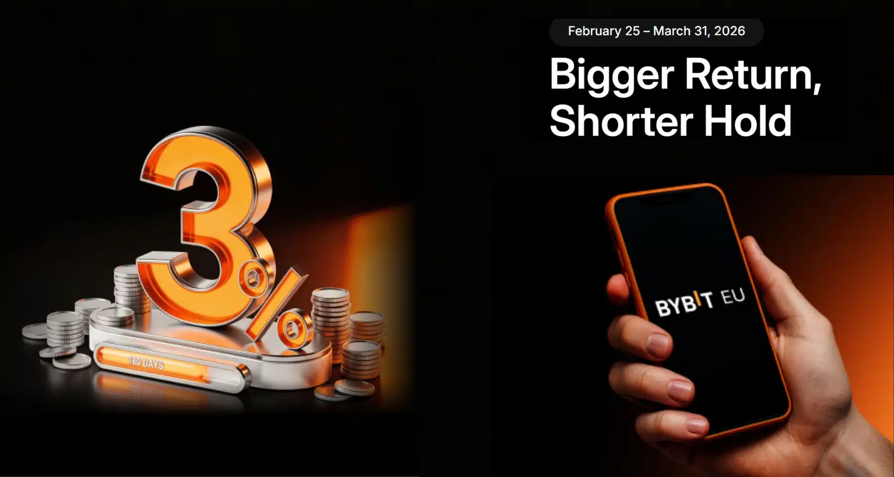 Uno dei pochi requisiti da rispettare è quello di detenzione, pari a 180 giorni a partire dal 31 marzo 2026 (il lasso temporale di riferimento va quindi dal 1 aprile 2026 al 27 settembre 2026, alle ore 23:59:59 UTC). Durante questo periodo puoi in ogni caso fare trading ed utilizzare i prodotti presenti su Bybit EU in totale tranquillità. Se procedi invece con i prelievi (sempre in questo periodo di detenzione) influenzerai l’idoneità al premio.