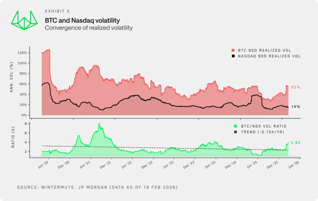La volatilità di Bitcoin e del mondo crypto è stata oggetto di una compressione strutturale che secondo Wintermute sarà duratura, anche a causa della normalizzazione e maturazione del mercato.