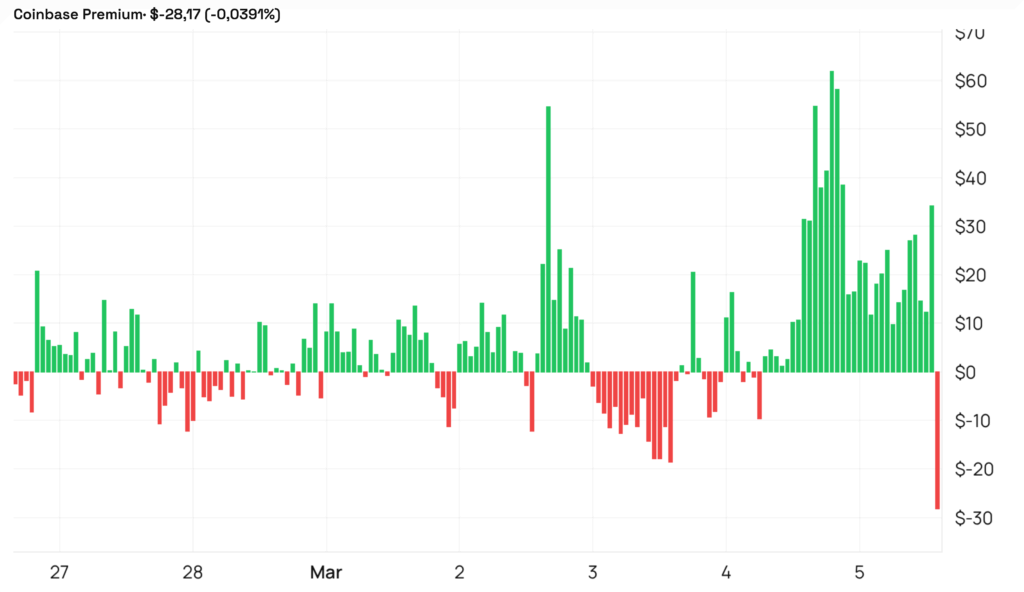 Nel frattempo il Coinbase Premium torna fortemente in negativo, segnalando il dominio di chi vende a sessioni USA aperte.