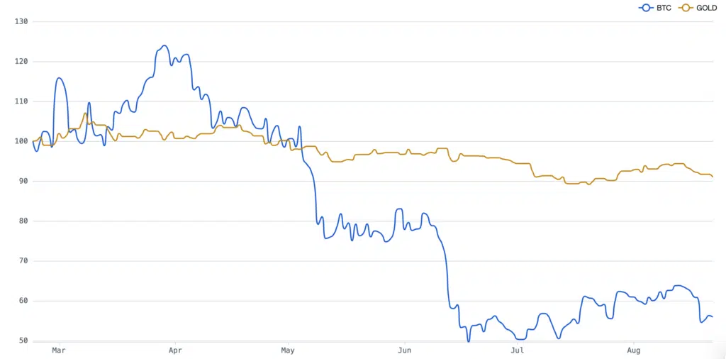 Il grafico che alleghiamo mostra chiaramente un movimento simile a quello che abbiamo oggi. C’è anche l’oro, che in questa circostanza, complice forse anche l’incredibile corsa degli ultimi mesi, sta soffrendo più del solito.