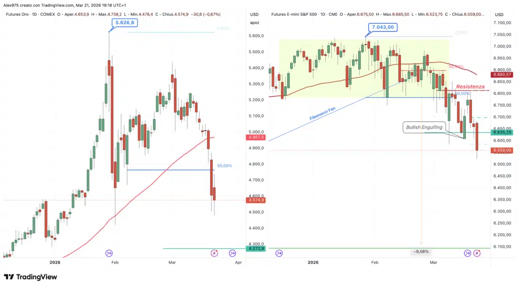 La spiegazione sta nei rendimenti obbligazionari. Lo shock petrolifero alimenta aspettative di inflazione più alta, riducendo le probabilità di tagli dei tassi. L’oro, che non paga cedole, perde attrattiva quando i rendimenti reali salgono.