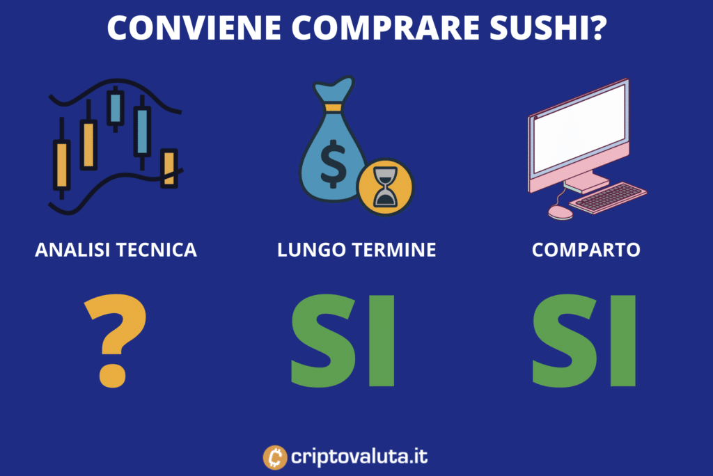 Si tratterebbe di un ottimo guadagno sul medio e lungo periodo, che se fosse confermato renderebbe SUSHI una delle criptovalute sulle quali puntare, anche sul medio periodo.