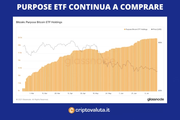 - Crescono anche le quantità di BTC detenuti da Purpose ETF