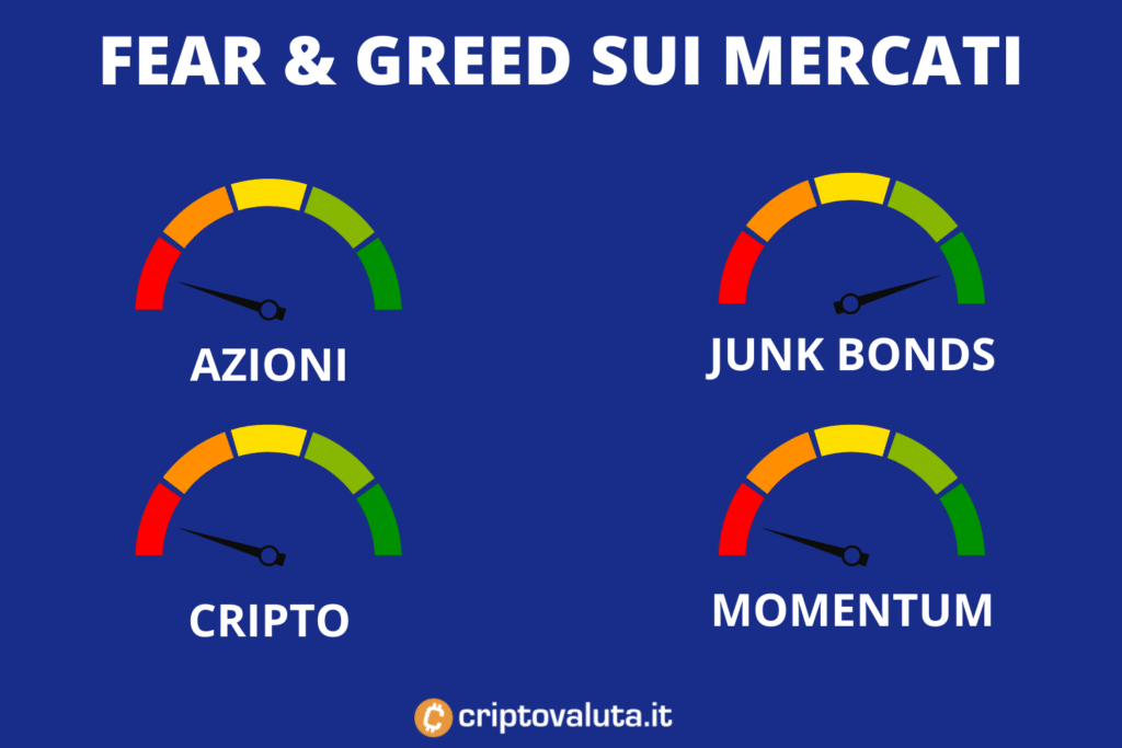 No, non parleremo soltanto dell’indice della paura sulle criptovalute, ma cercheremo di dare una lettura più ampia, che tenga conto anche degli altri mercati – che in una situazione di mercato del genere non possono che essere intimamente collegati al mondo delle criptovalute e anche di Bitcoin.