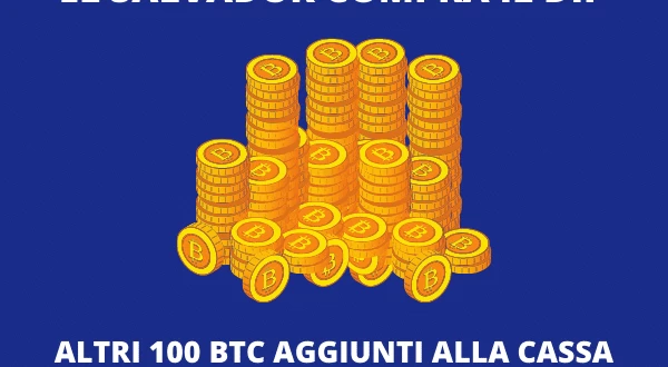 El Salvador ha acquistato 100 Bitcoin aggiuntivi, cosa che si aggiunge all’annuncio, di qualche giorno fa, della nascita di Bitcoin City. Con una nota aggiuntiva e che potrebbe riportare il buon umore sui mercati. L’ultimo acquisto di El Salvador aveva poi innescato, dopo pochi giorni, una nuova corsa di Bitcoin.