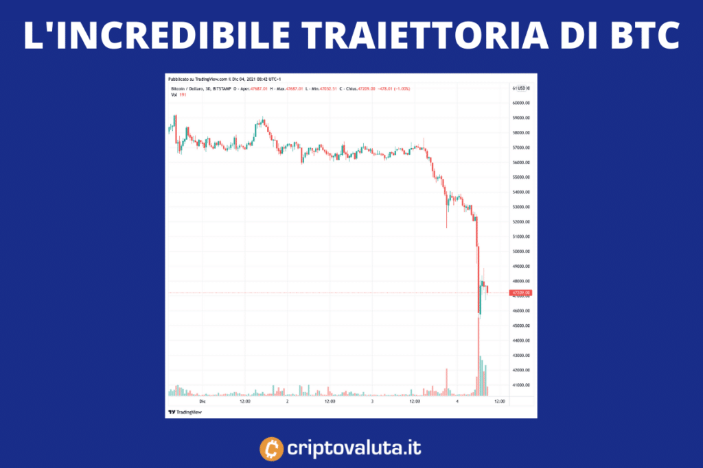 È quanto avvenuto quando sui principali exchange utilizzati al mondo si sono toccati prezzi vicini a 43.000$, per poi avere l’ovvio bounce dopo un flush di questo tipo. Passati certi livelli di prezzo, la razionalità non esiste più e a condurre le danze sono bot e ordini lasciati aperti. Fino a quando qualcuno ne approfitta e parte il rimbalzo.